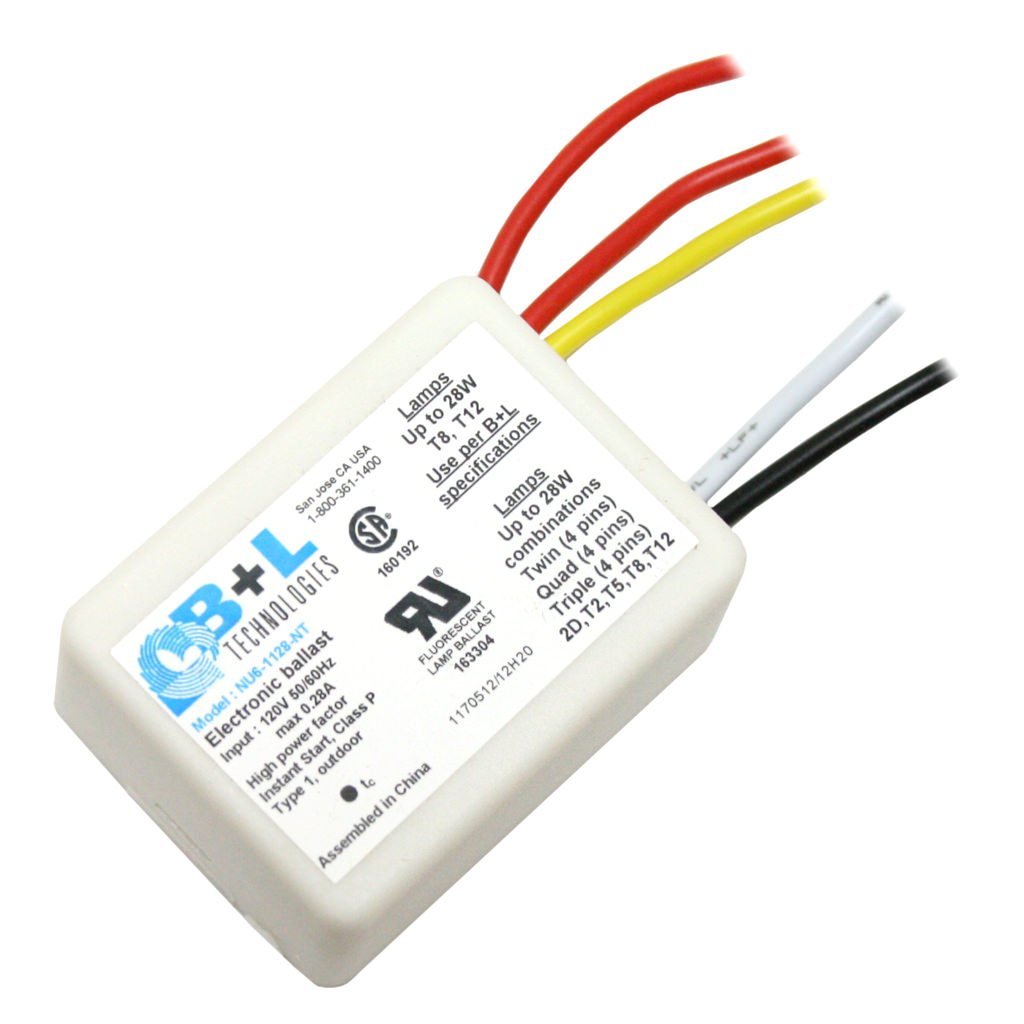 B+L Technologies Electronic Ballast. 120V, Operates multiple fluorescent lamps up to 28w. No mounting feet. Instant Start Ballast.