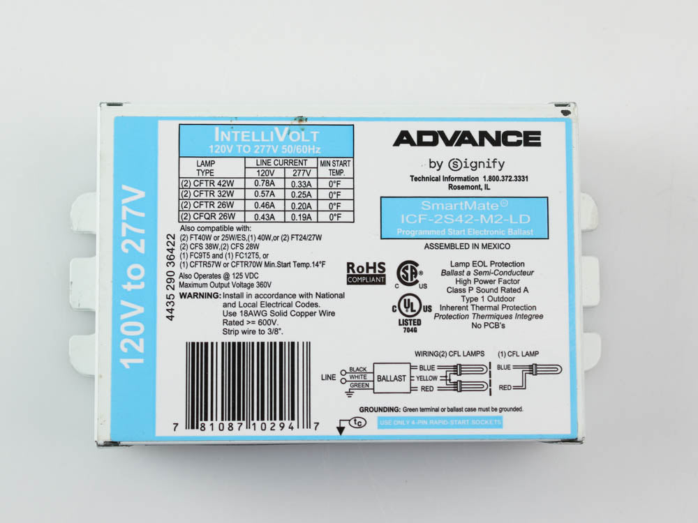 Philips Advance Electronic Ballast Kit 120V to 277V for (2) 42W Plug-in CFL - ICF2S42M2LDK