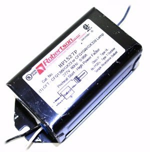 The Robertson HP1527P is a Magnetic Ballast that operates (1) CFT13T5 lamp at 120V with leads out both ends. This ballast is great for areas that require normal lighting! Armed with a Pre-heat starting method, this ballast is used in office, board rooms, and retail. Also operates CFQ13W, and CFL lamps.